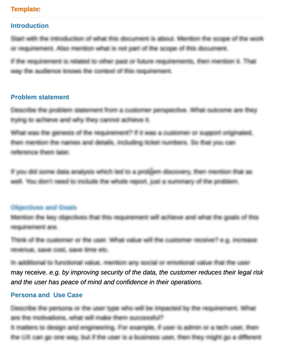 Get a PDF template for your product requirements document or PRD. This is for product managers who are shipping products. It can also be used by business analyst or project managers who are implementing internal products.